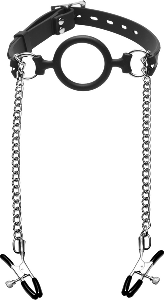 Mutiny Silicone O-Ring Gag With Nipple Clamps